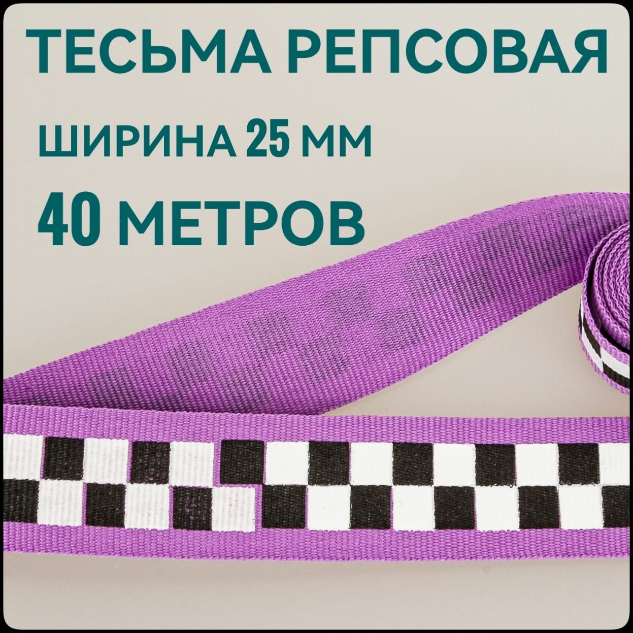 10 цен на Лента/ тесьма репсовая для шитья сиреневая с принтом шахматы ш.2.5 см, в уп.40 м, для шитья, творчества, рукоделия.