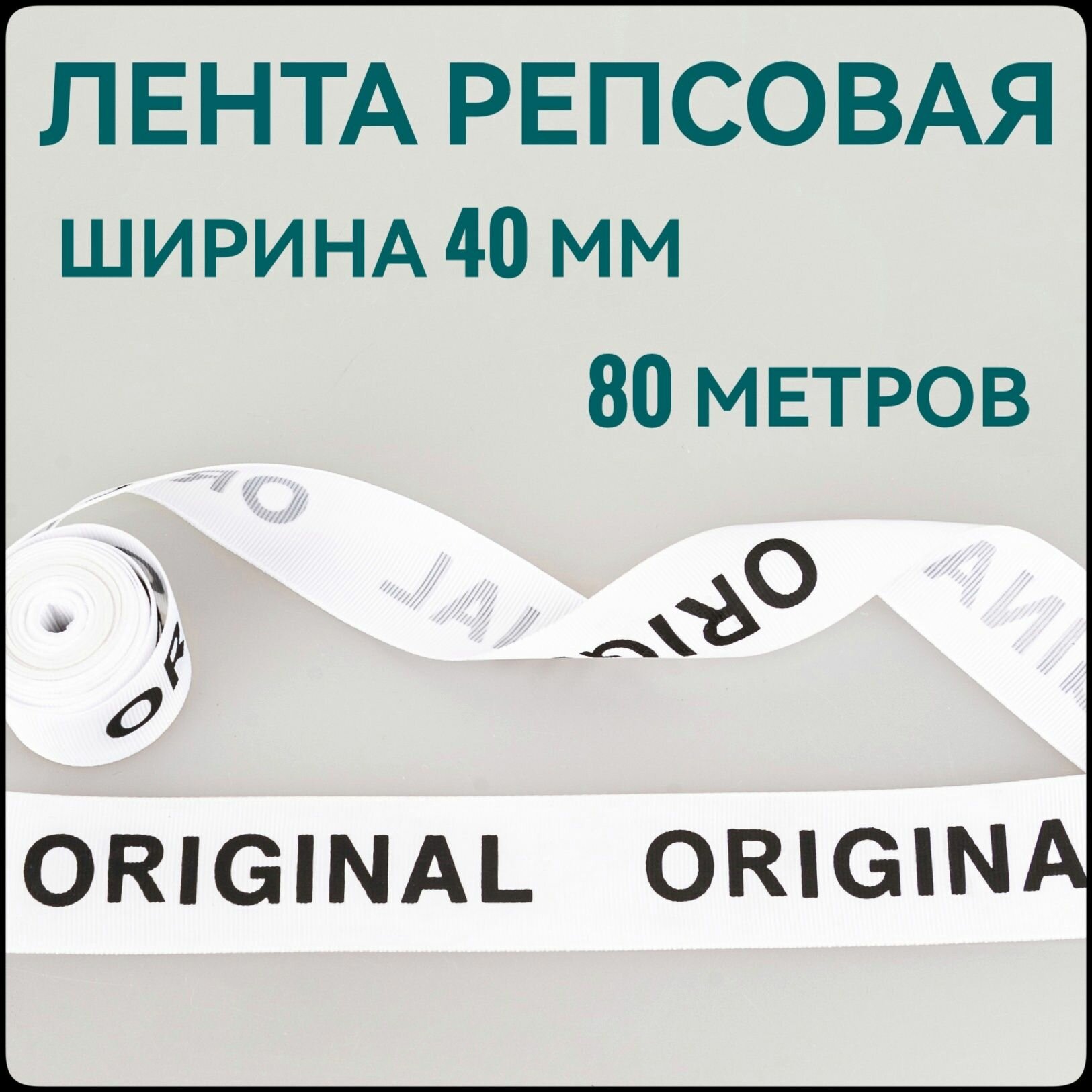10 цен на Лента/ тесьма репсовая для шитья черный на белом с принтом ORIGINAL ш.40 мм, в уп.80 м, для шитья, творчества, рукоделия.