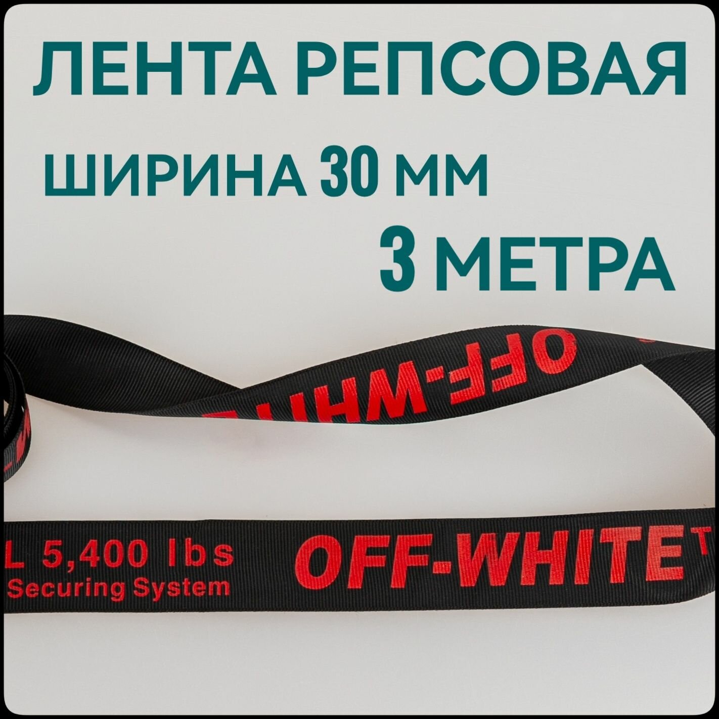 10 цен на Лента/ тесьма репсовая для шитья красный на черном с принтом OFF ш.30 мм, в уп.3 м, для шитья, творчества, рукоделия.