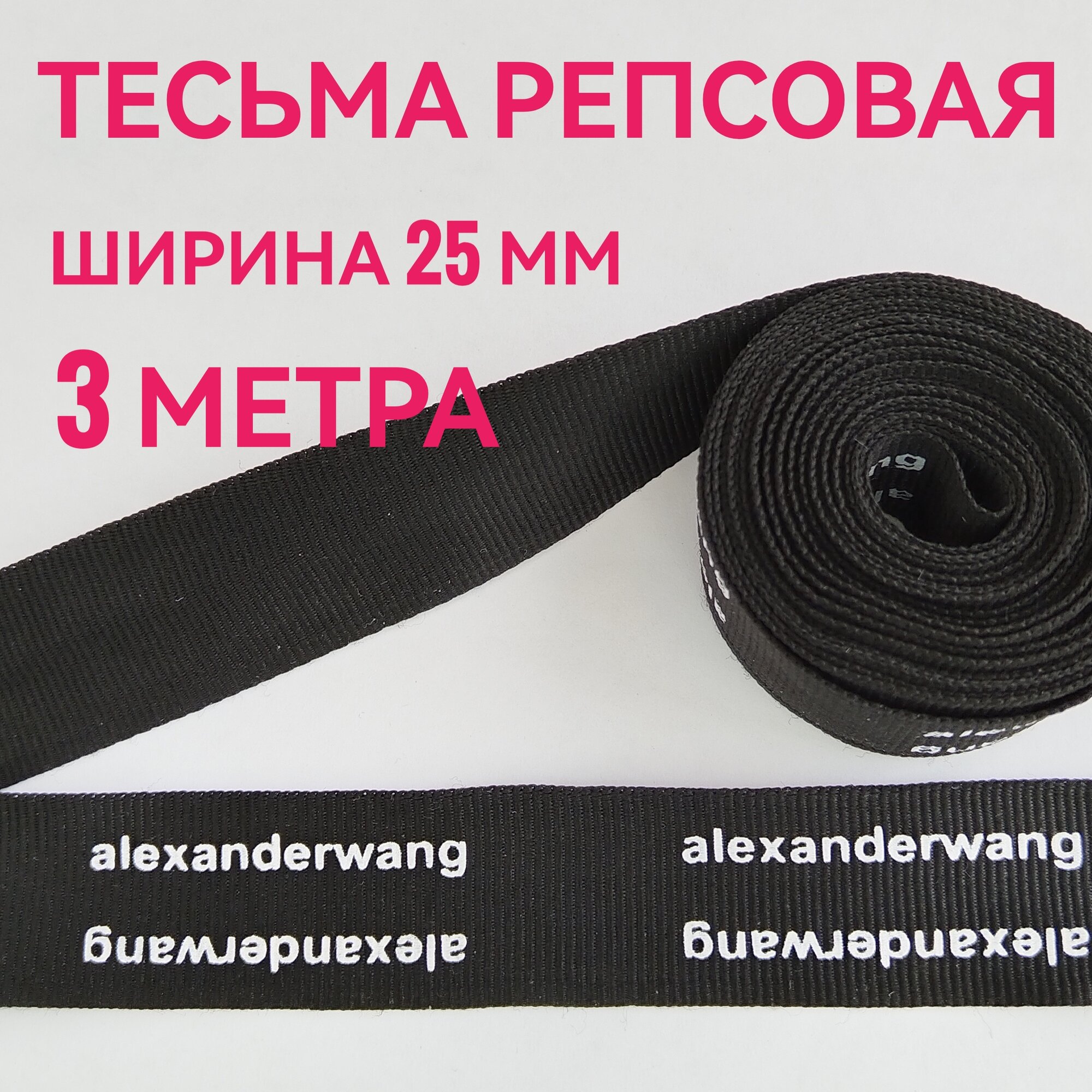 Лента/ тесьма репсовая для шитья принт буквы черный на белом ш.25 мм, в уп.3 м, для шитья, творчества, рукоделия. 260 ₽
