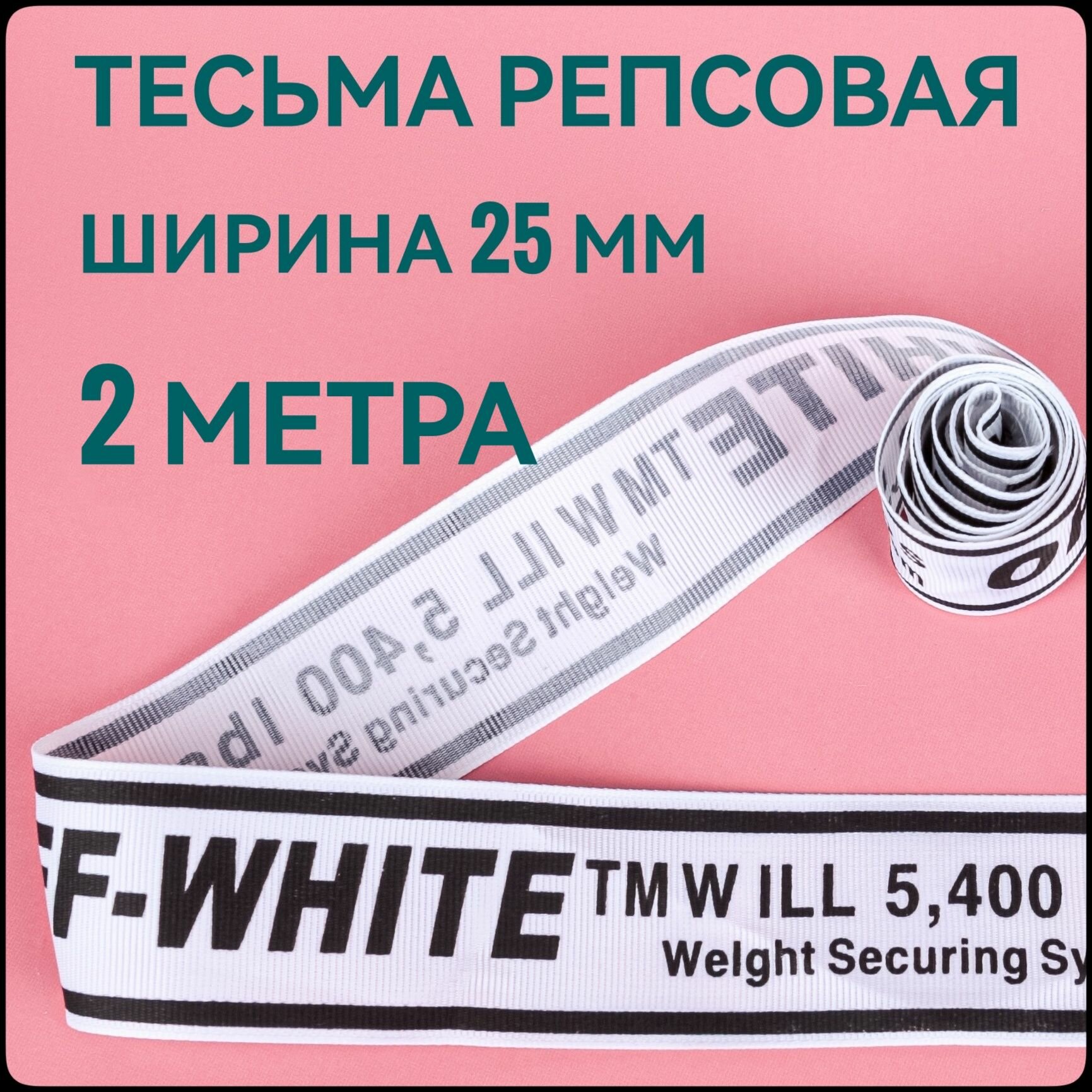 10 цен на Тесьма /лента репсовая принт OFF черный на белом, ш.25 мм, в упаковке 2 м, для шитья, творчества, рукоделия.
