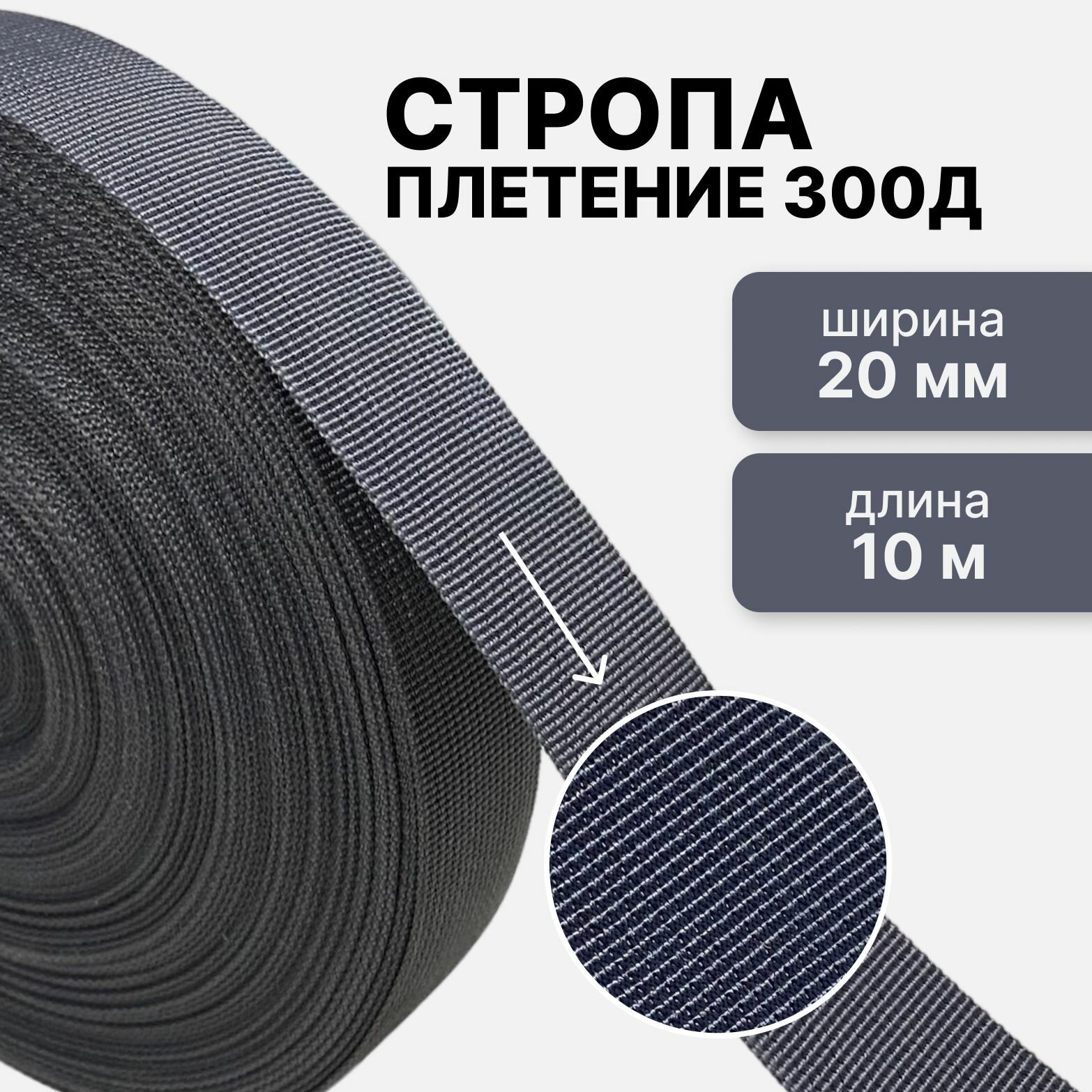 10 цен на Стропа текстильная ременная лента, ширина 20 мм, (плетение 300Д), серый, 10м