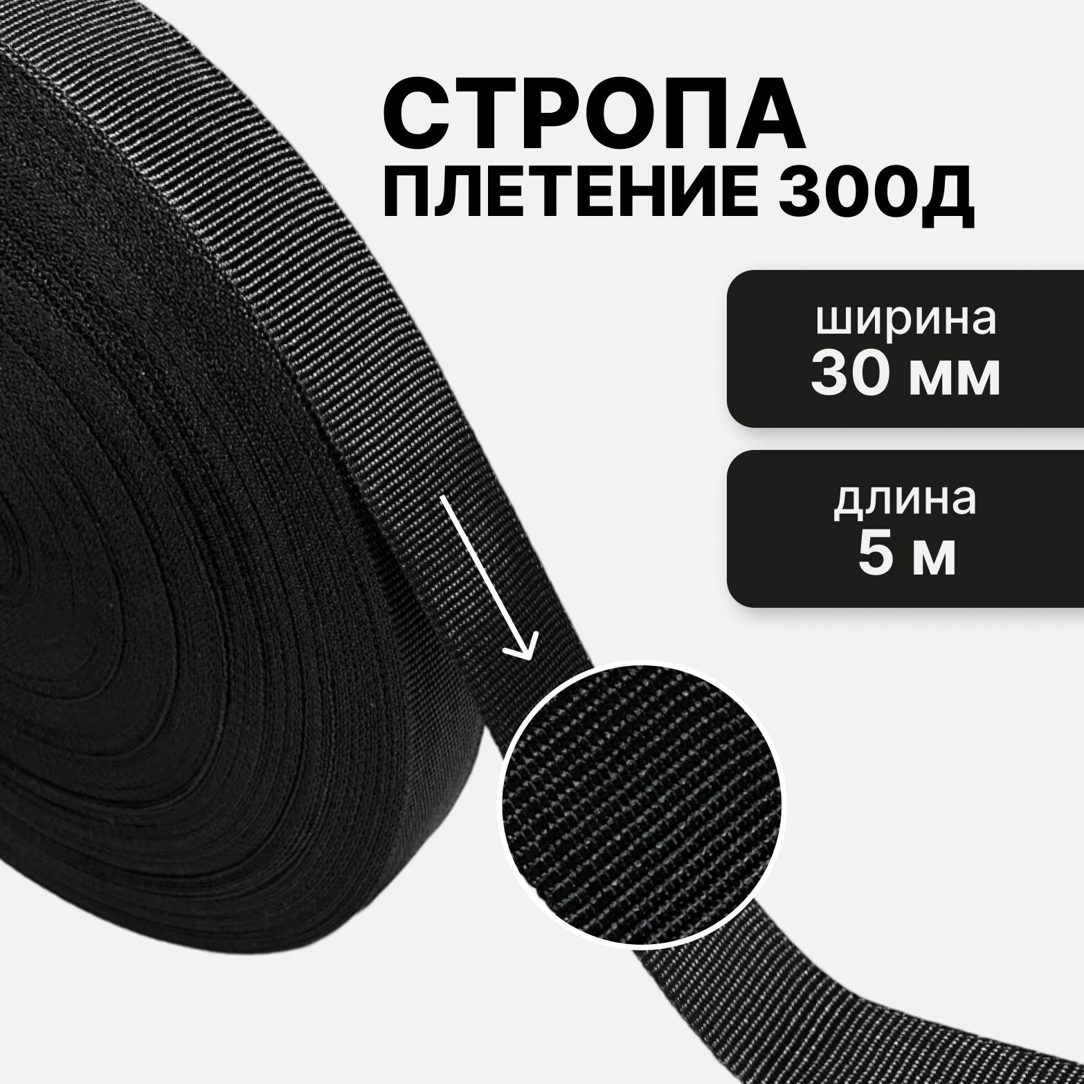 10 цен на Стропа текстильная ременная лента, ширина 30 мм, (плетение 300Д), черный, 5м