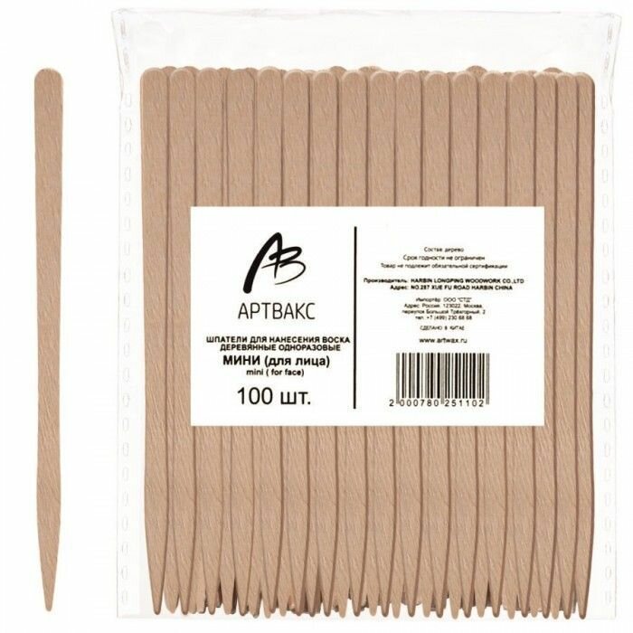 Артвакс, Шпатели деревянные одноразовые мини для лица №100шт (размер 3х88 мм) информация: