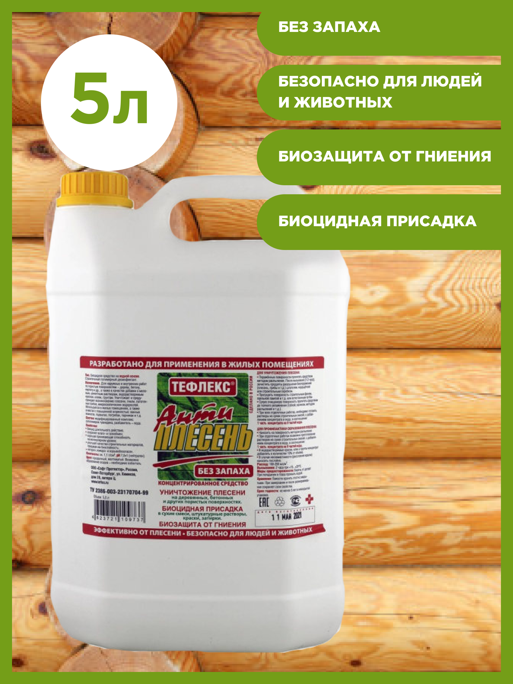 Биоцидная пропитка Тефлекс Антиплесень без запаха бесцветный 5 л информация: