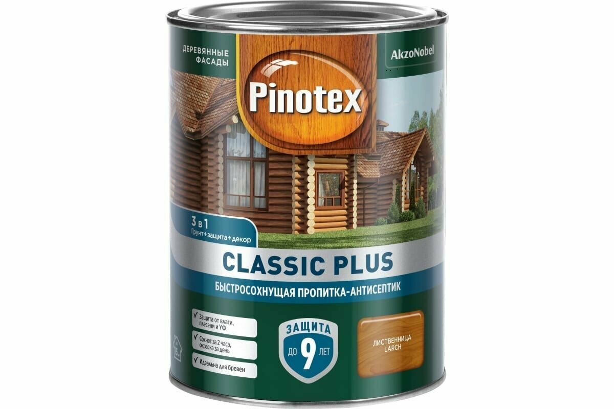 PINOTEX CLASSIC PLUS пропитка-антисептик быстросохнущая 3 в 1, лиственница (0,9л)