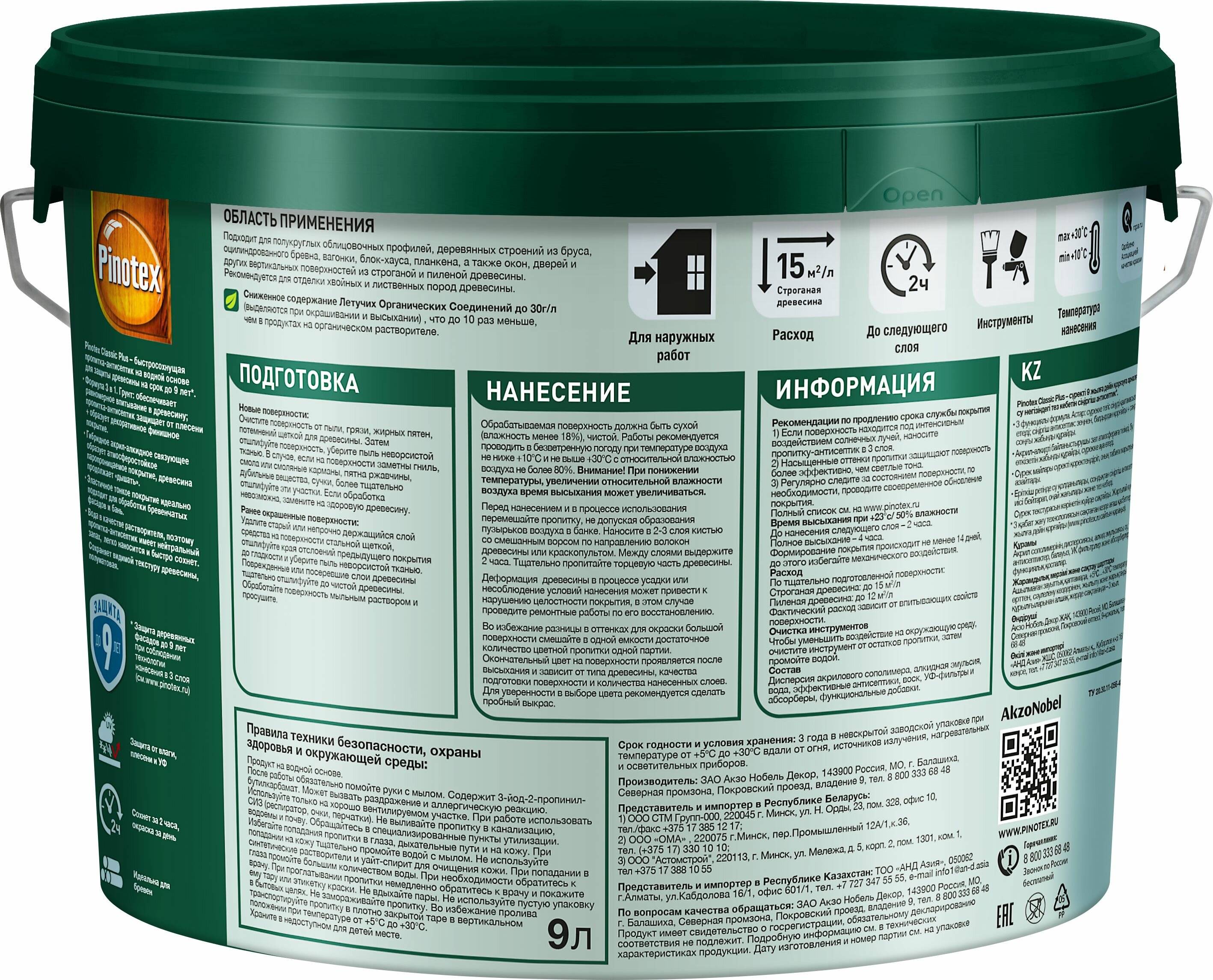 Пропитка-антисептик быстросохнущая Pinotex Classic Plus бесцветный 9 л информация: