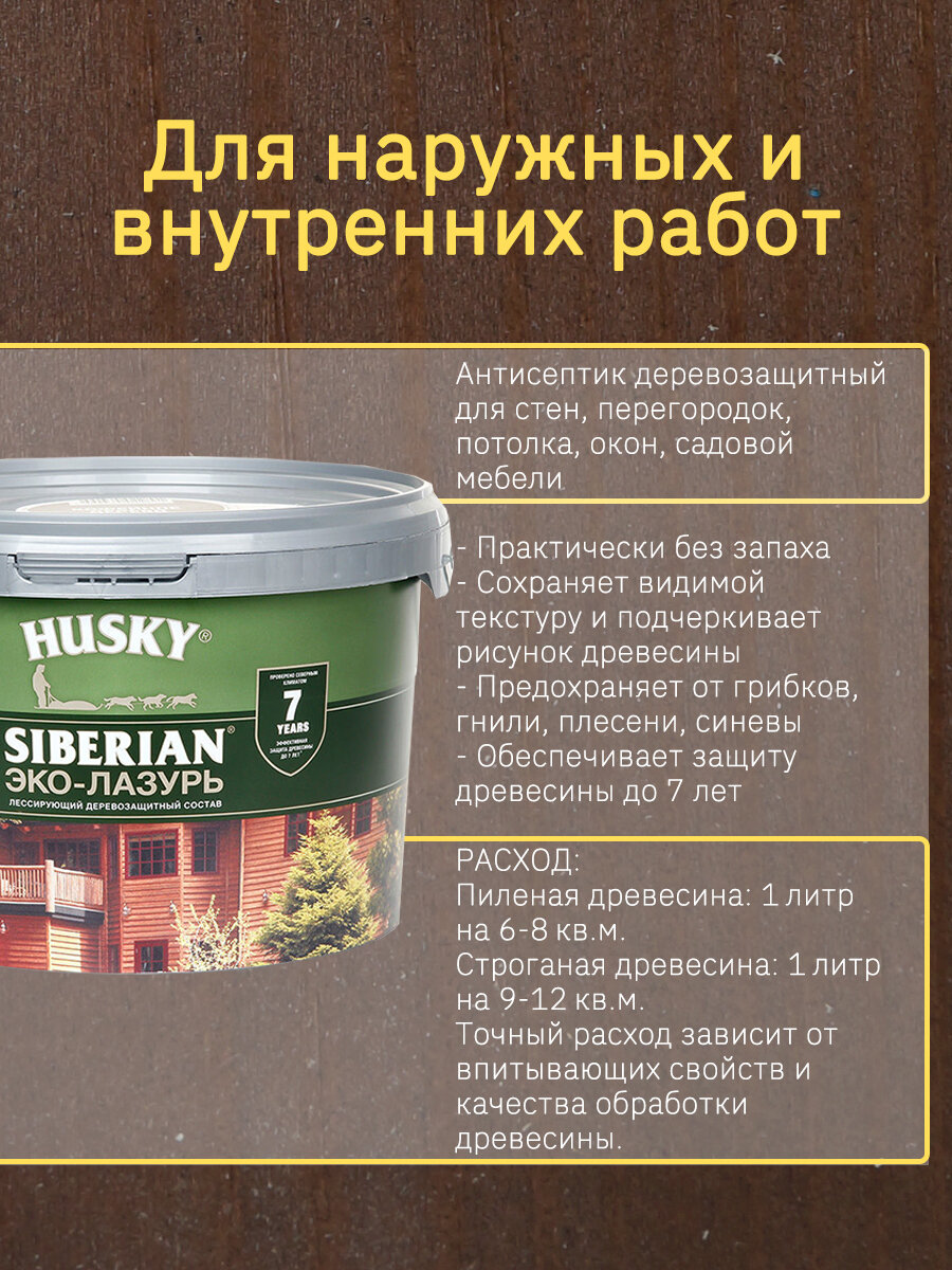 HUSKY SIBERIAN Эко-Лазурь для дерева полуматовая кофейное дерево (2,5л) информация:
