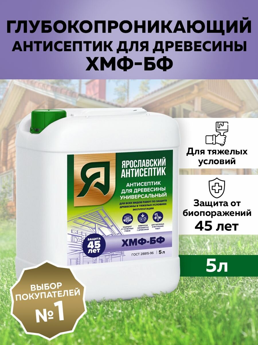 Ярославский Антисептик глубокопроникающий антисептик ХМФ-БФ для защиты древесины, 5 л информация: