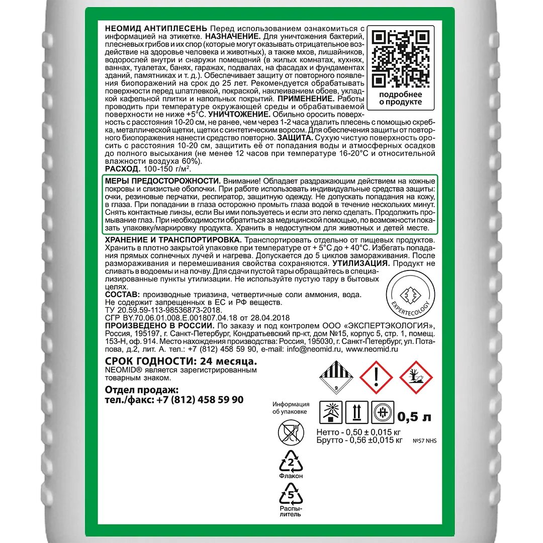 Антиплесень Neomid 0.5 л ЭКО на минеральной основе информация: