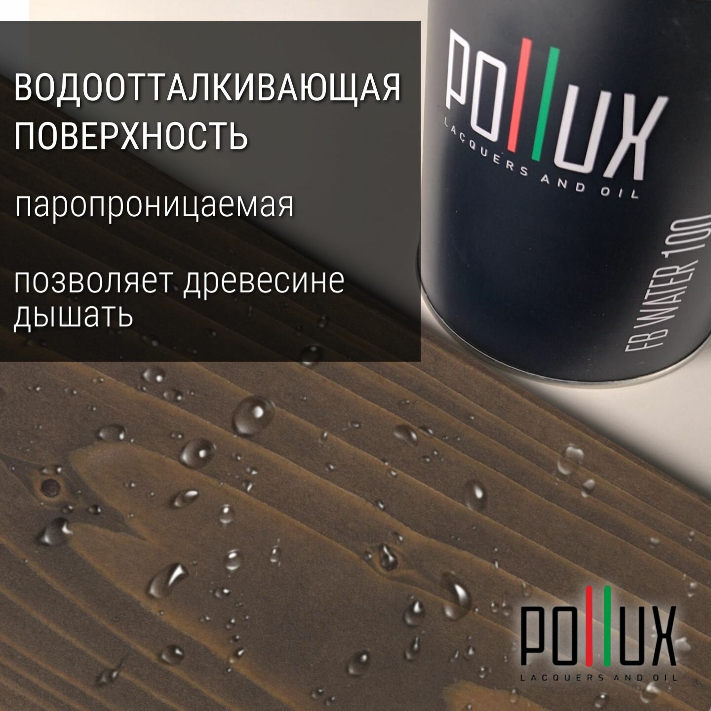Пропитка для дерева декоративная акриловая матовая Pollux FB Water 100 "Самуи" 3 в 1, антисептик / лазурь / грунтовка для древесины, быстросохнущая, без запаха, цвет серо-коричневый, 1 литр 1 401 ₽