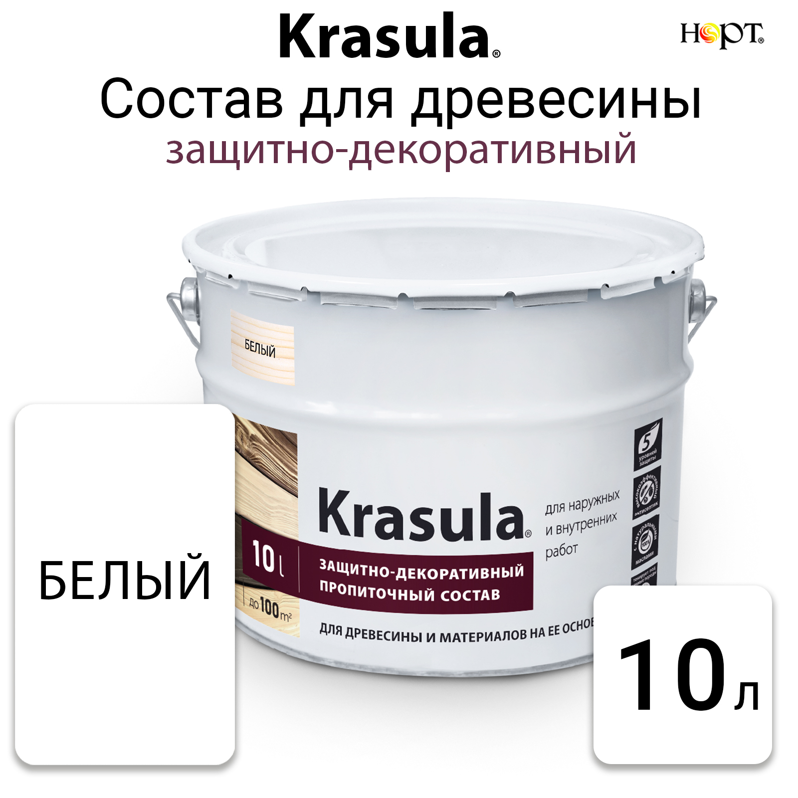 Krasula 10л белый, Защитно-декоративный состав для дерева и древесины Красула, пропитка, лазурь информация: