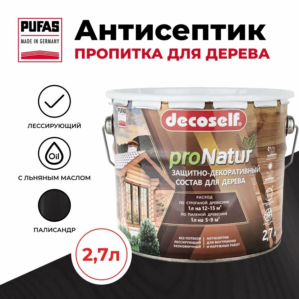Пуфас Антисептик лессирующий для дерева палисандр Decoself (2,7л) информация: