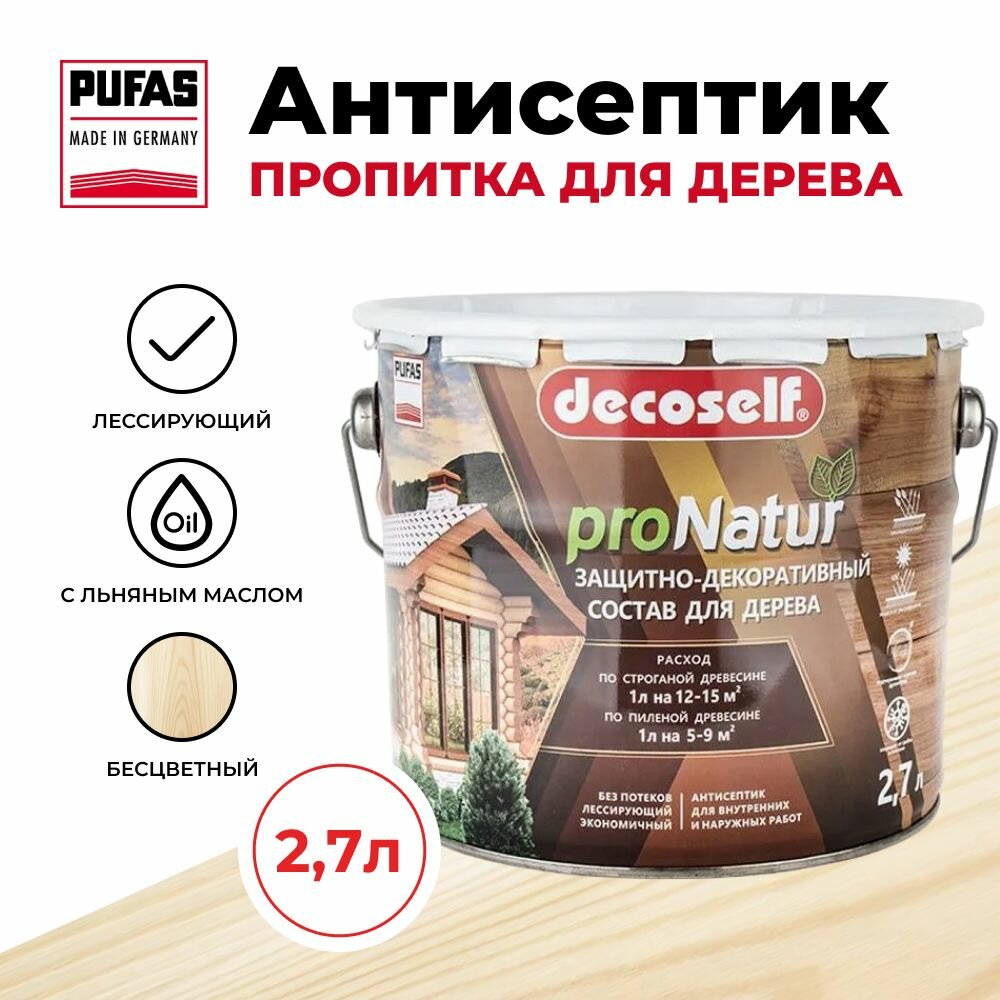 Антисептик лессирующий для дерева Pufas Decoself бесцветный (2,7 л)