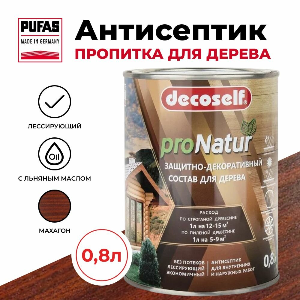 Пуфас Антисептик лессирующий для дерева махагон Decoself (0,8л) информация: