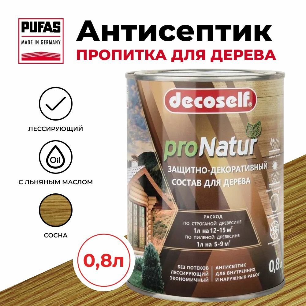 Пуфас Антисептик лессирующий для дерева сосна Decoself (0,8л) информация: