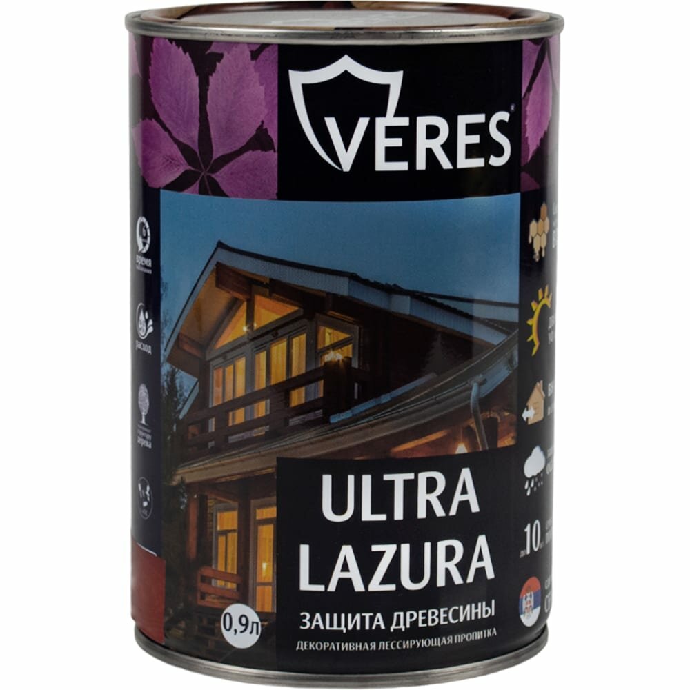Декоративно-защитная пропитка VERES 42034 Ультра лазура № 9 палисандр 0.9 л