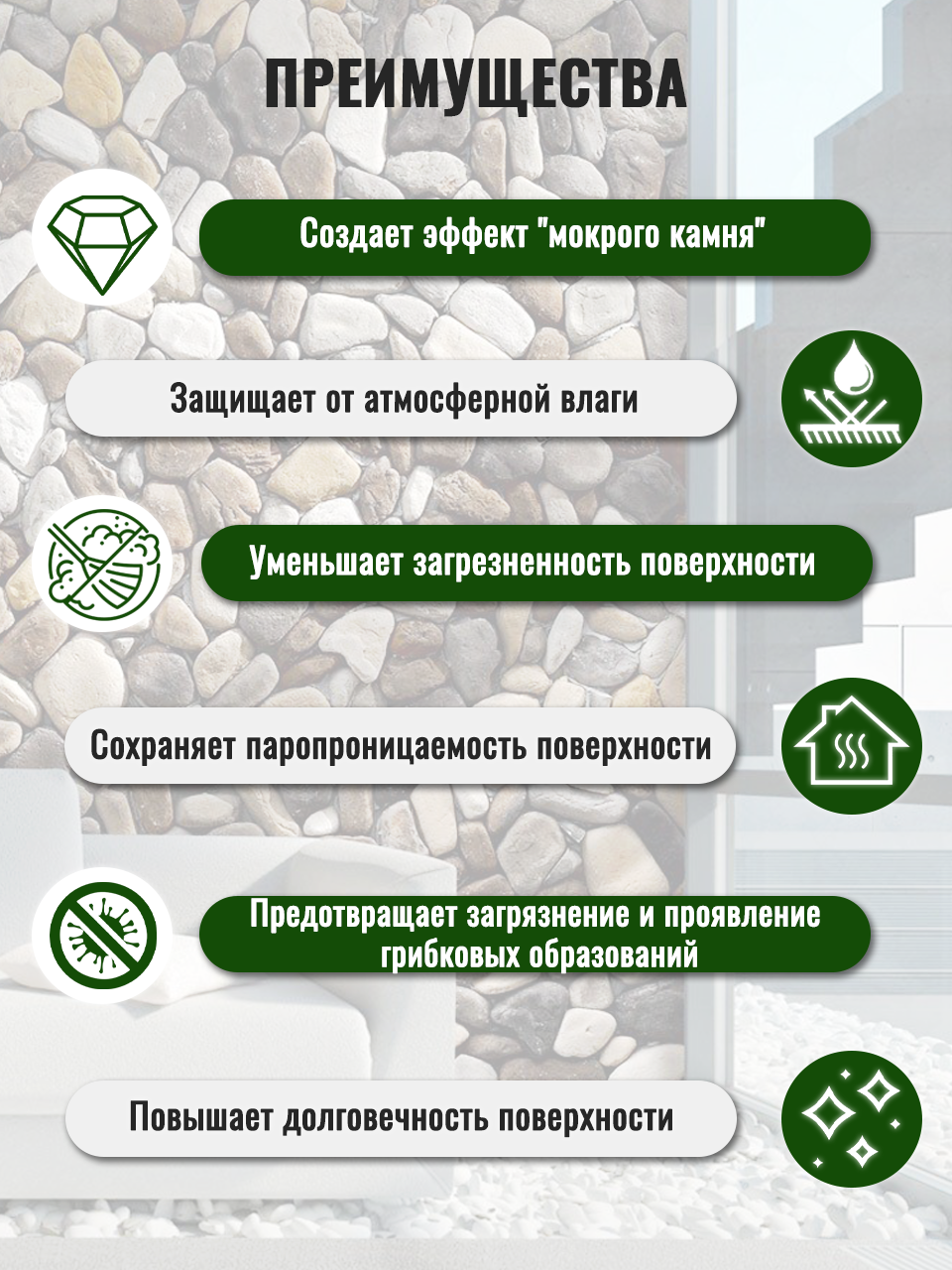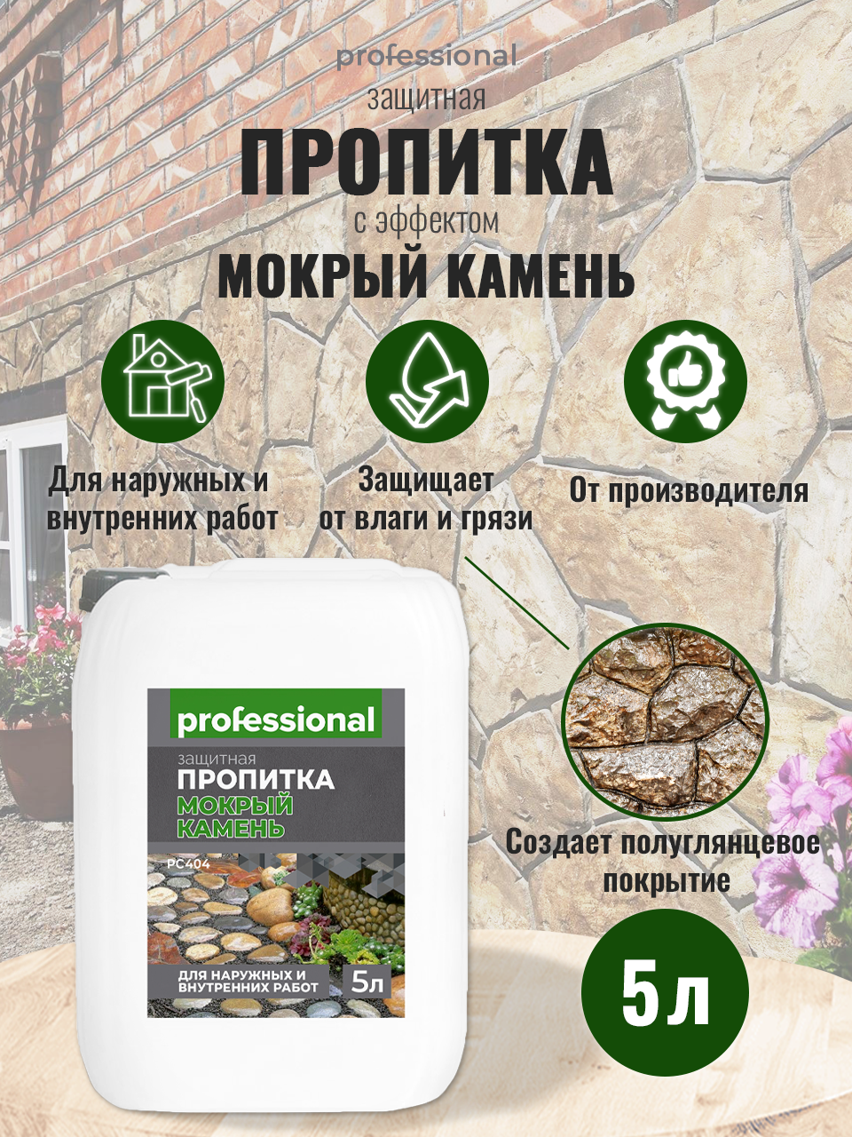 Пропитка водоотталкивающая для камня, для кирпича PROFESSIONAL с эффектом "Мокрый камень" 5л информация: