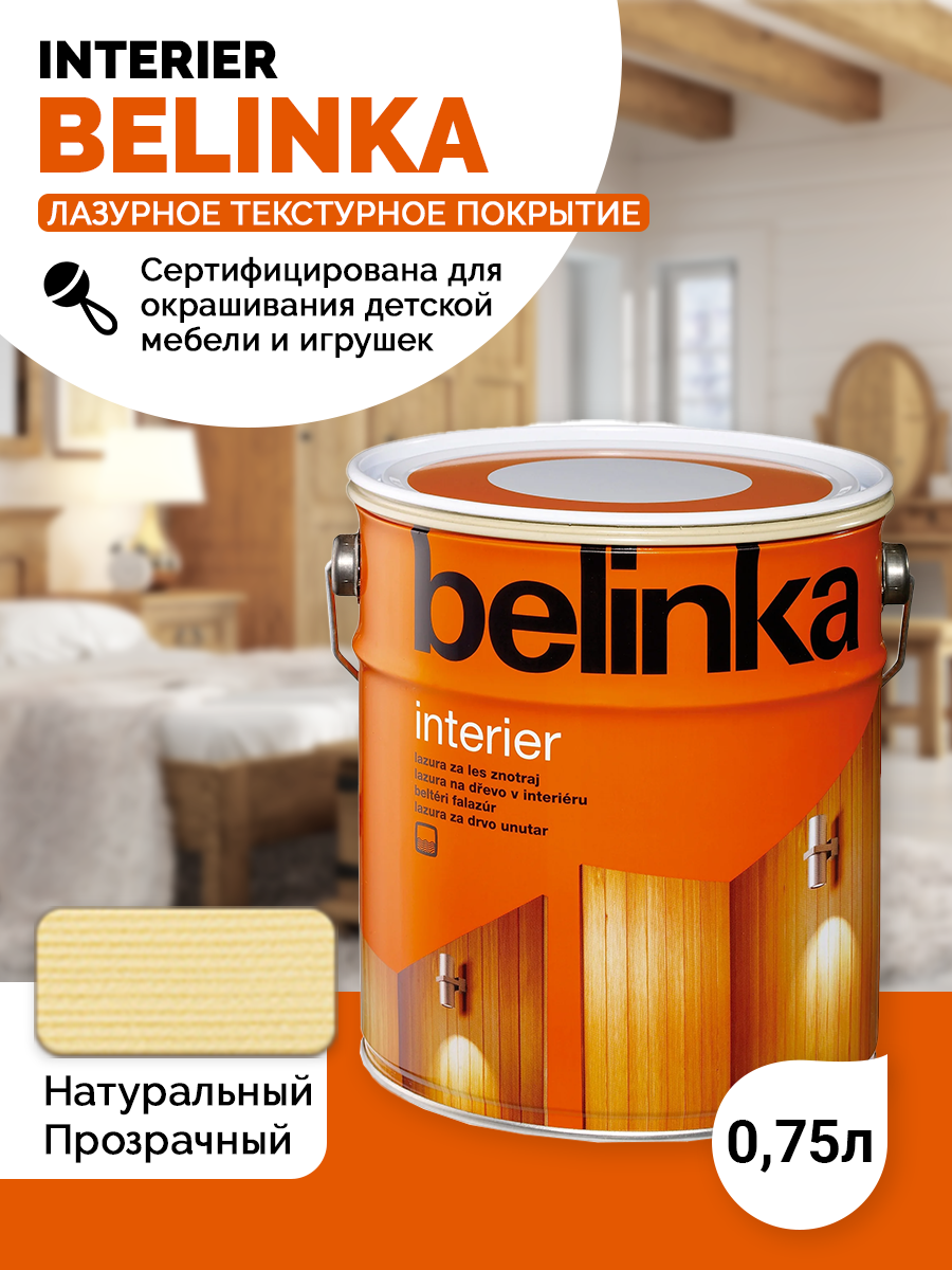 10 цен на Belinka Interier (0,75 л 61 - натуральный прозрачный) Белинка Интерьер лазурь на водной основе для защиты древесины внутри помещений