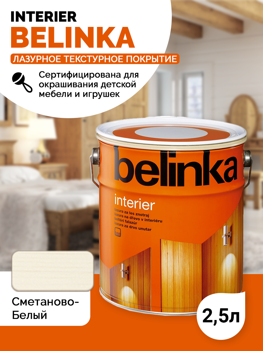 Belinka Interier (2,5 л 73 - сметаново-белый) Белинка Интерьер лазурь на водной основе для защиты древесины внутри помещений