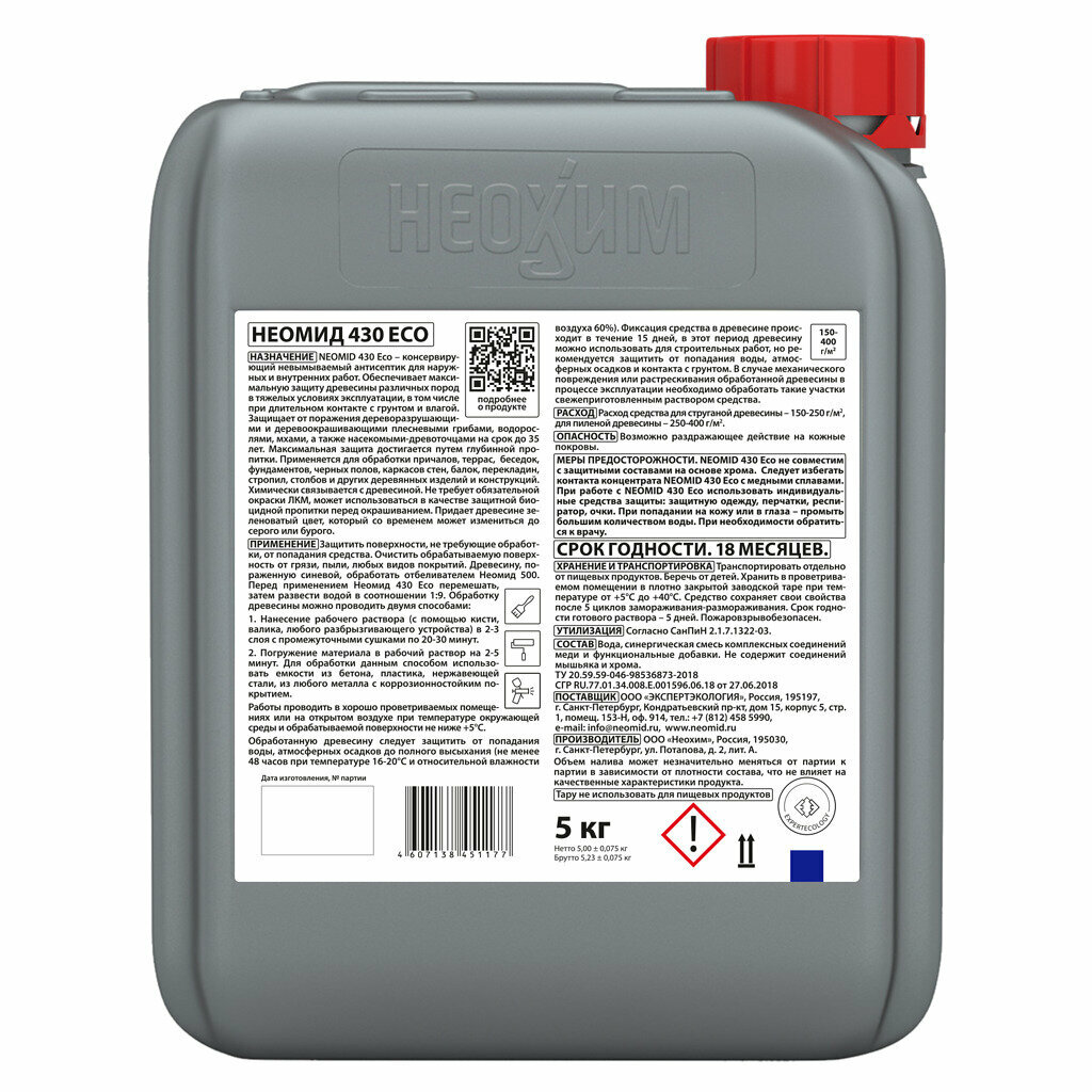 Антисептик для дерева невымываемый NEOMID 430 ECO , Неомид 430(5 кг), антисептик концентрат 1:9 5 849 ₽