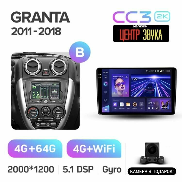 Магнитола для LADA GRANTA 2011-2018 г. Teyes CC3 2K 4/64ГБ, рамка и проводка в комплекте информация:
