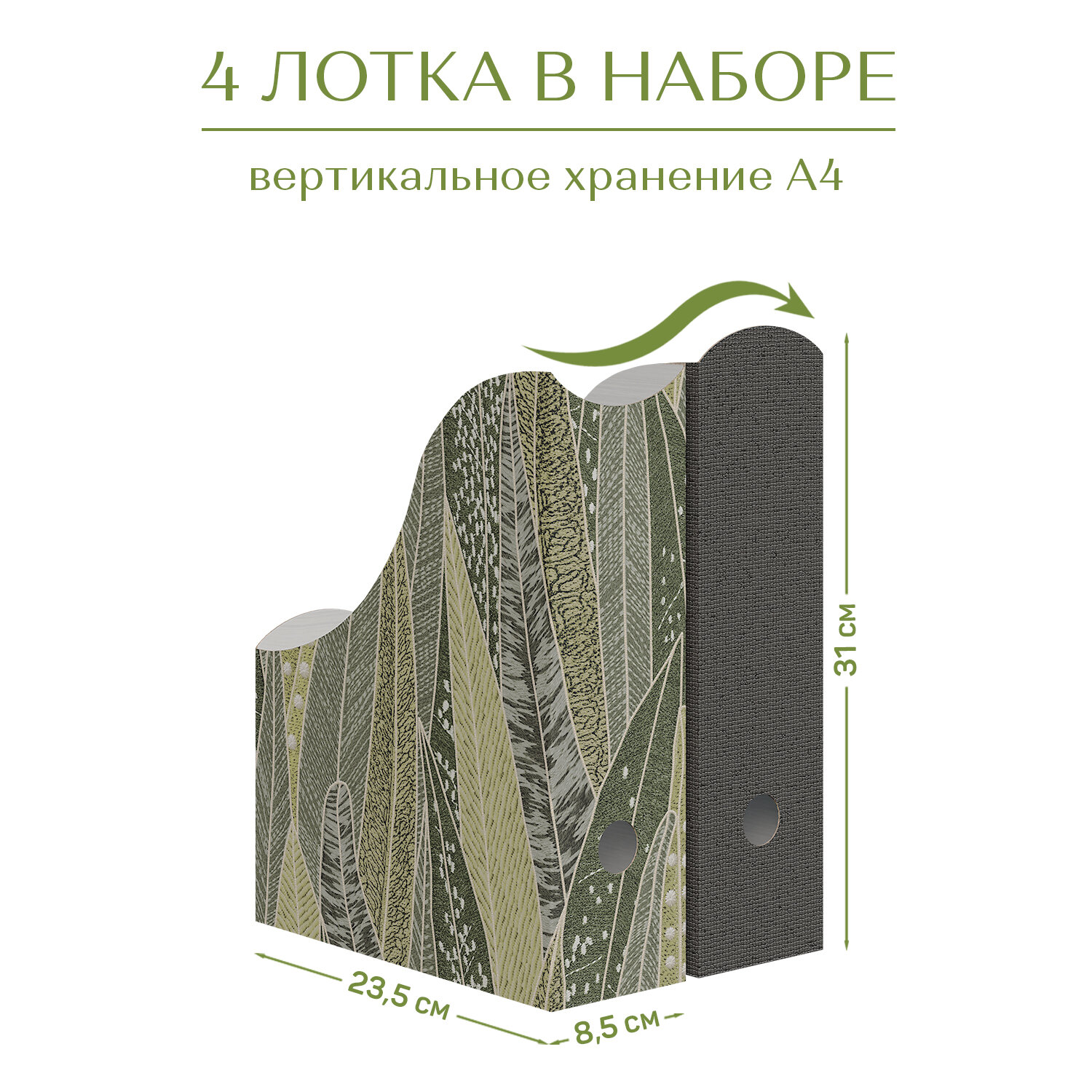 Лотки для бумаг верт., 31*23.5*8.5 см, набор 4 шт., 2 цвета, GREEN информация: