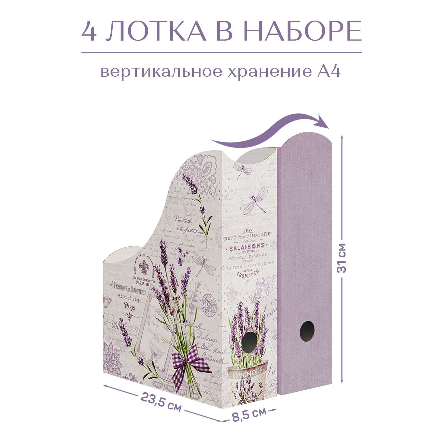 Лотки для бумаг верт., 31*23.5*8.5 см, набор 4 шт., 2 цвета, LAVANDE информация: