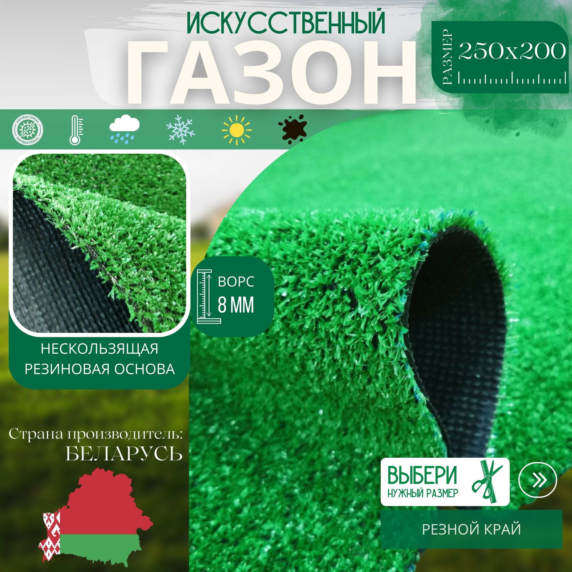 Искусственный газон Optimal 8мм 250х200см информация: