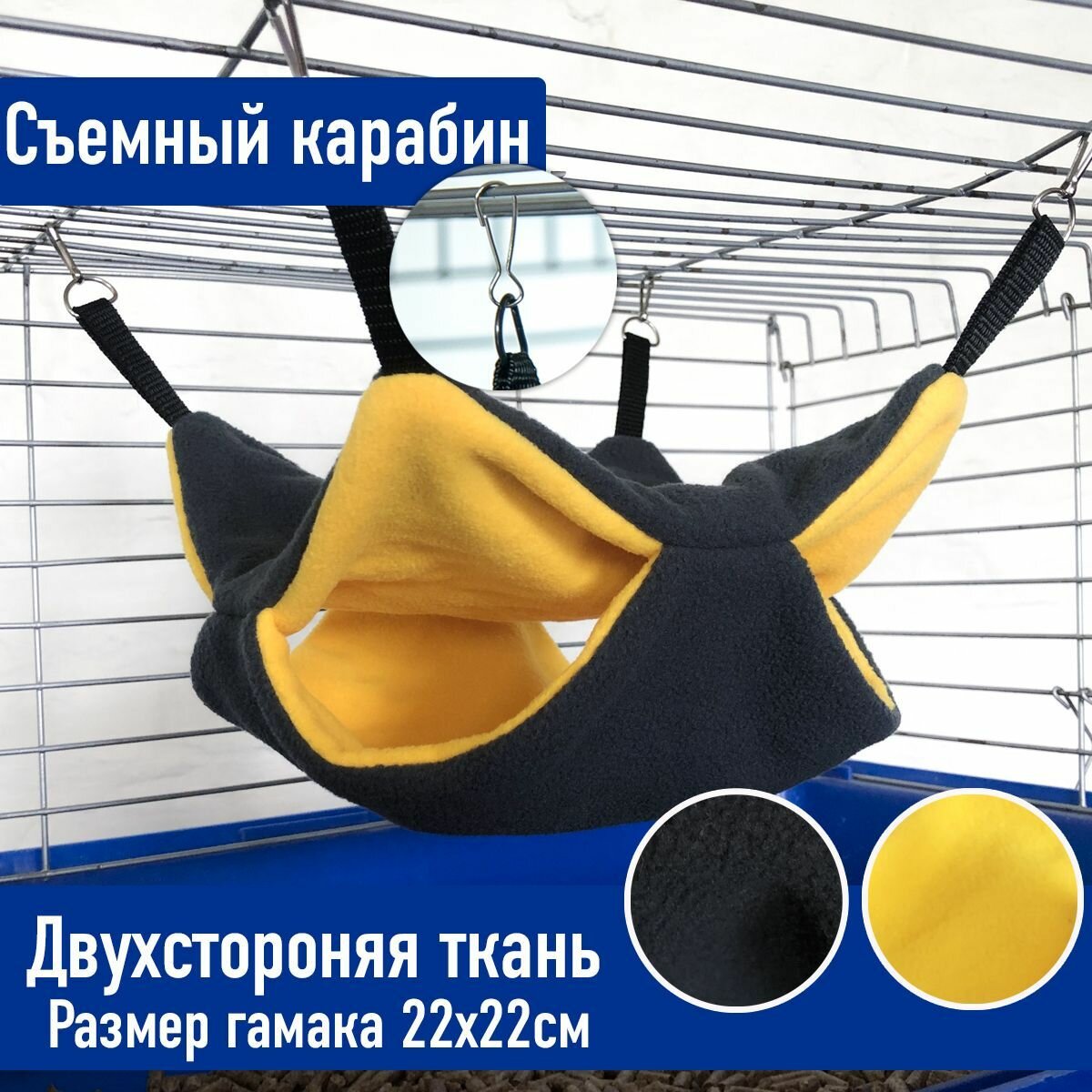 Отзывы на Гамак для грызунов двухъярусный и крыс серый+желтый, размер 22х22см
