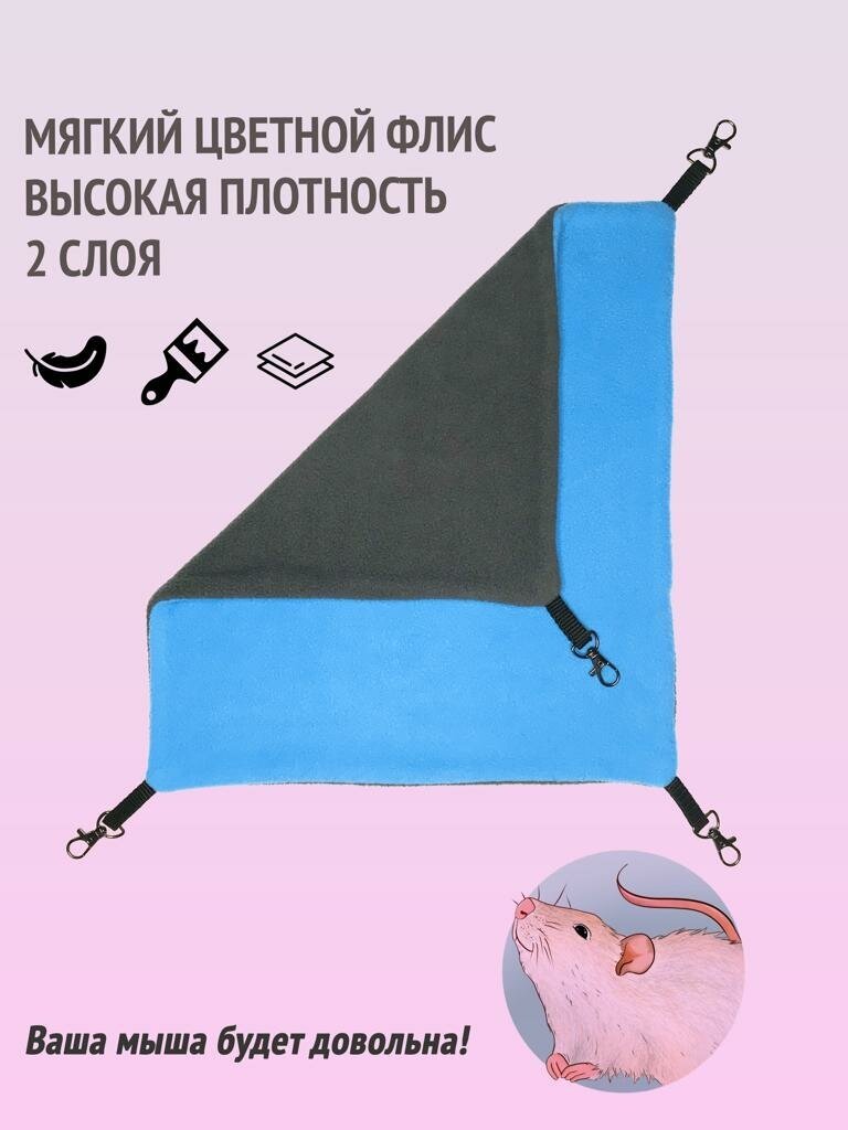 Гамак для грызунов 32*36 см, крыс, морских свинок, шиншилл, хомяков, мышей, хорьков, дегу, белок. Цвет: голубой, темно-серый информация: