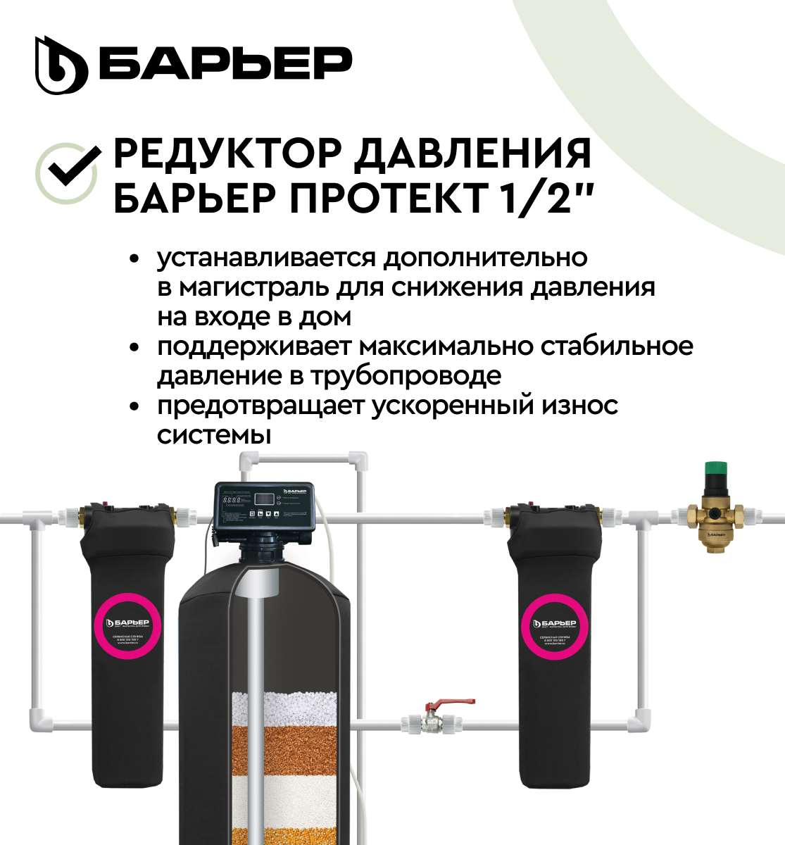 Редуктор давления БАРЬЕР протект ½, регулятор давления воды для систем отопления, водоснабжения квартиры и дома информация: