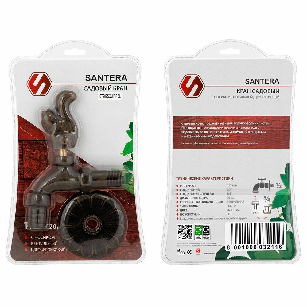 Кран запорный садовый декоративный Santera ST202FSQUIRREL информация: