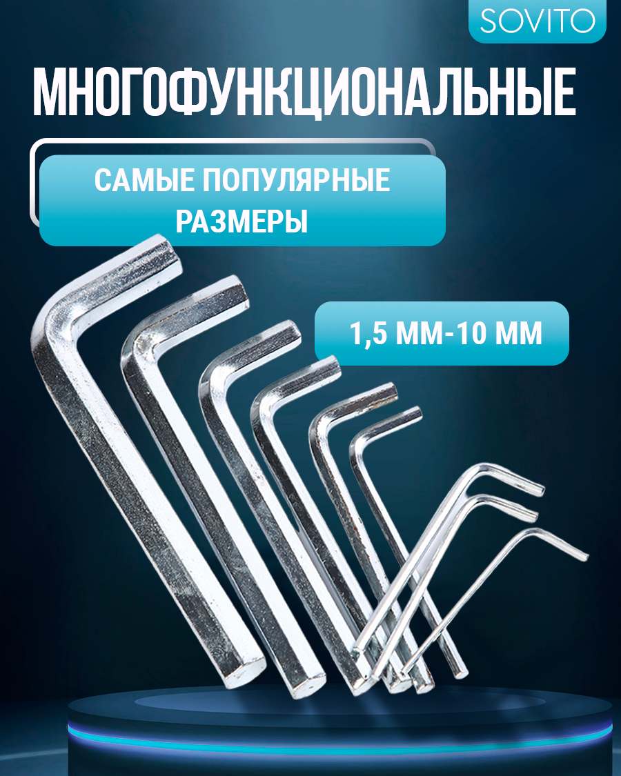 10 цен на Набор шестигранных ключей (набор шестигранников), 9 штук, 1,5-10 мм.
