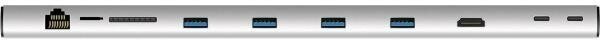 Мульти хаб Rombica M7 Type-C 2 x USB 3.0 / microSD / SD / Type-C / Ethernet RJ-45 / HDMI / 2 x 3.5 mm audio серый космос (TC-00095)