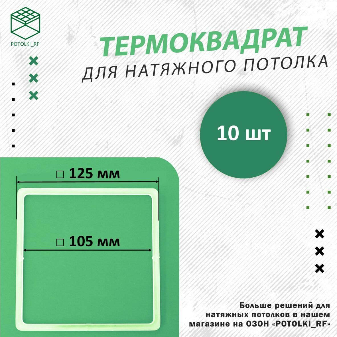 | Подробная комплектация | Термоквадрат для натяжного потолка, d 125 мм - 10 шт |