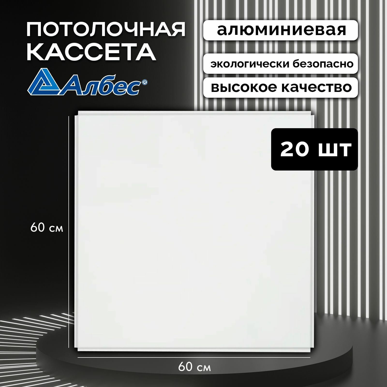 Потолочная кассета Албес AP600A6, 45 градусов, Т-24 А903 Rus белый матовый алюминиевый эконом - 600*600 мм ALBES информация: