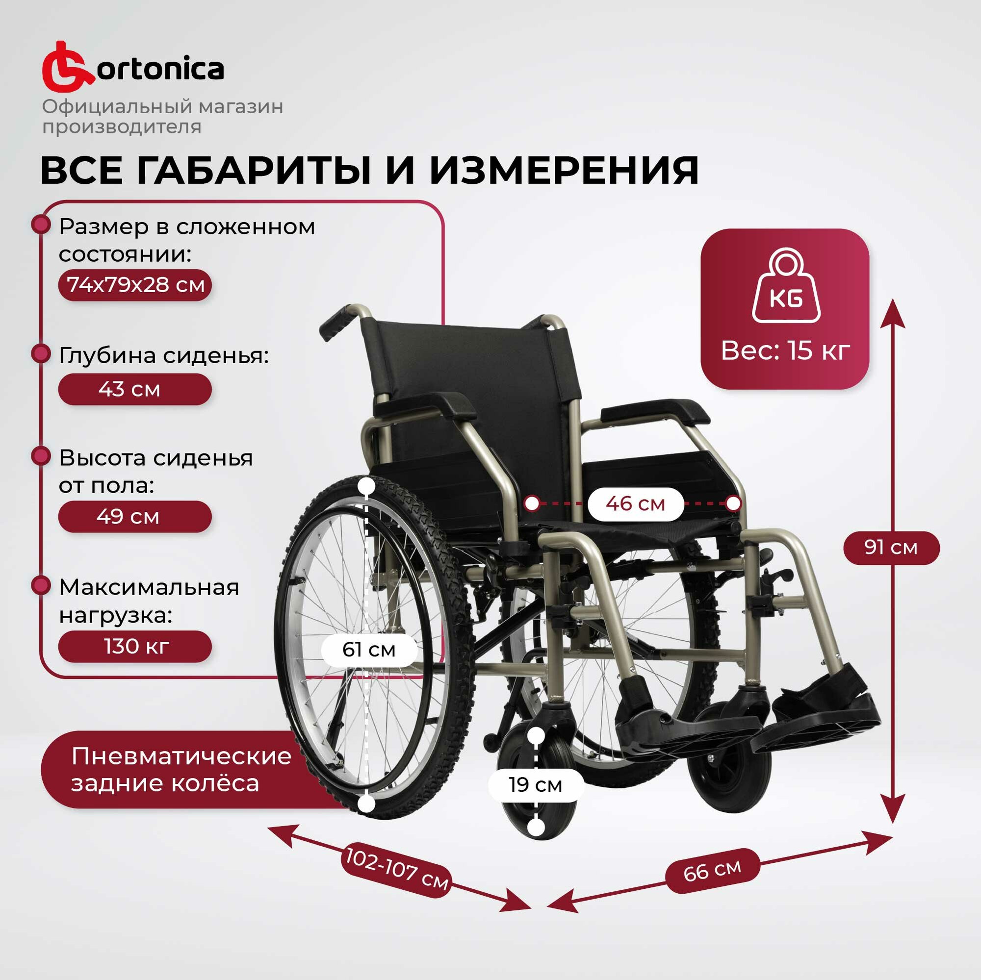 Отзывы на Кресло-коляска механическая Ortonica Base 170 / Base Lite 200 ширина сиденья 46 см передние литые, задние пневматические колеса повышенной проходимости