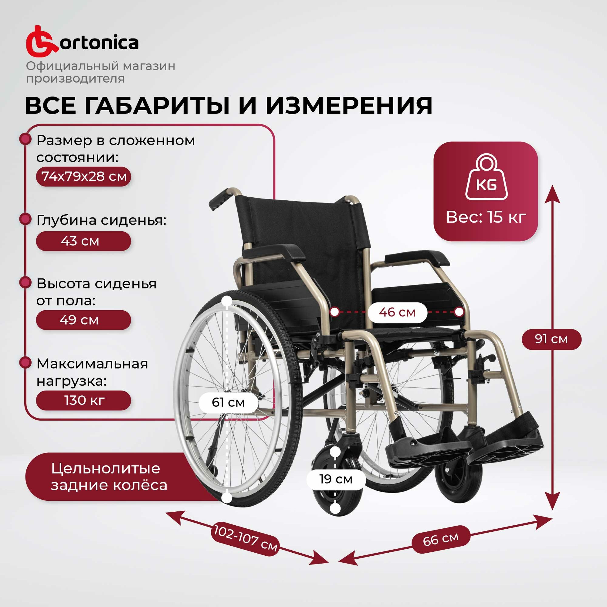 Отзывы на Кресло-коляска механическая Ortonica Base 170 / Base Lite 200 ширина сиденья 46 см литые колеса