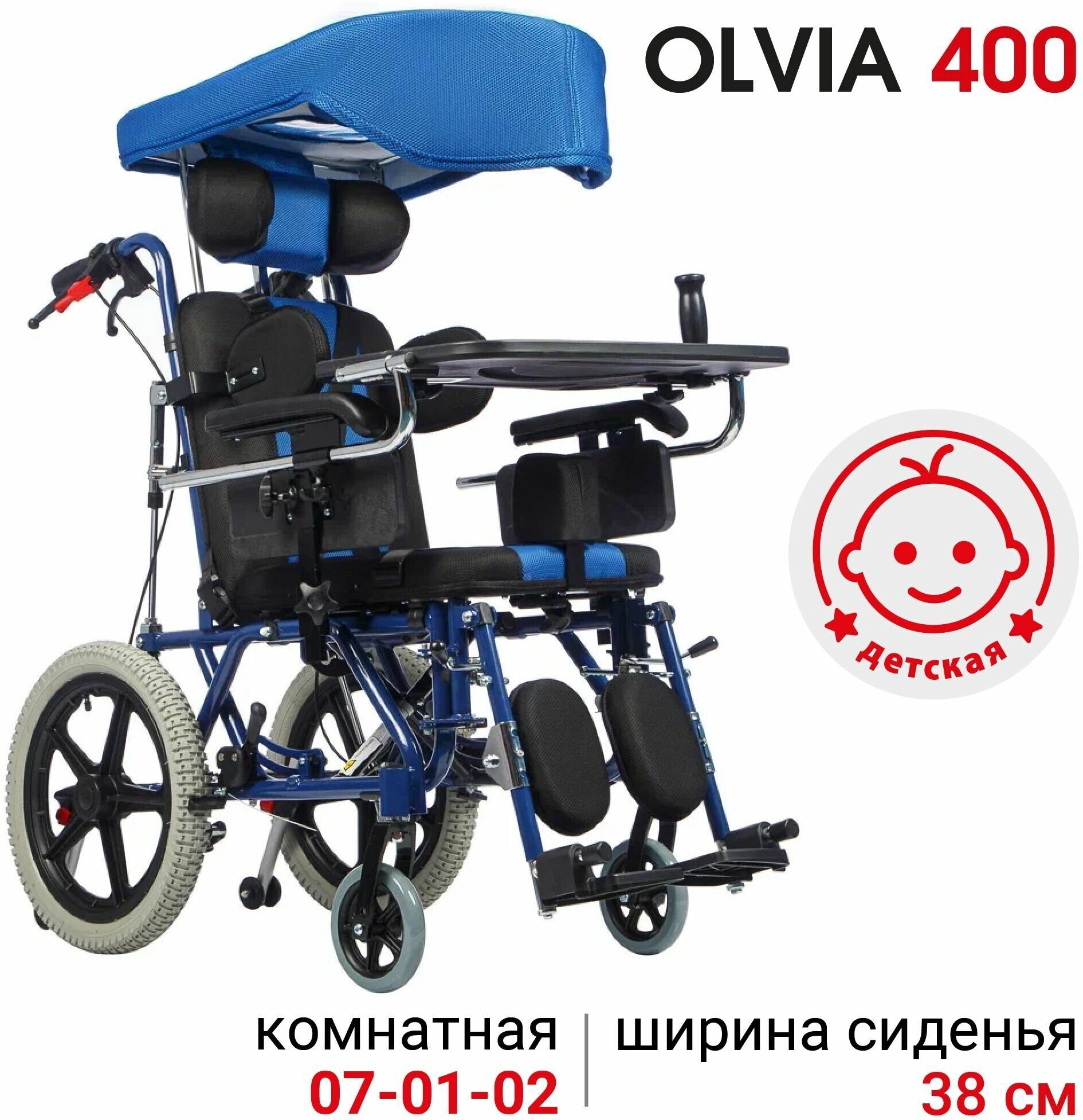 Кресло-коляска детское комнатное Ortonica Olvia 400 38UU детей с ДЦП с капюшоном и столиком ширина сиденья 38 см литые колеса информация: