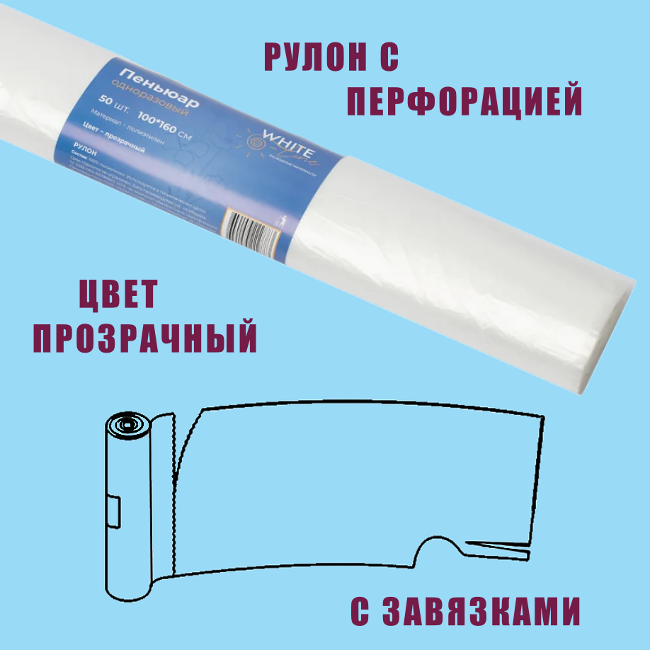 Пеньюар в рулоне 50 штук р-р 100х160 см цв. прозрачный информация: