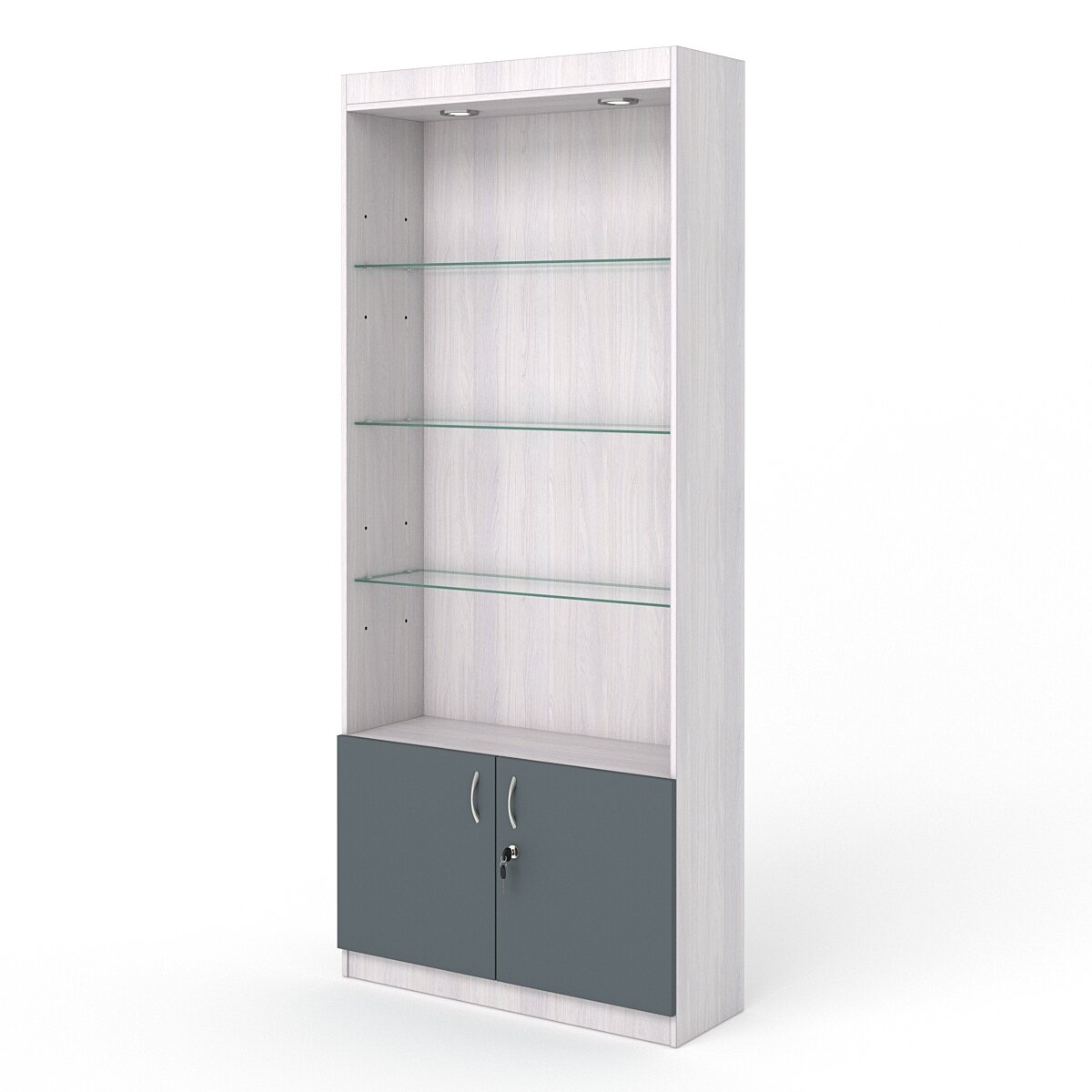 Витрина №300-2 (с дверками, задняя стенка - стекло), Ясень Анкор и Белый 90 x 30 x 210 см