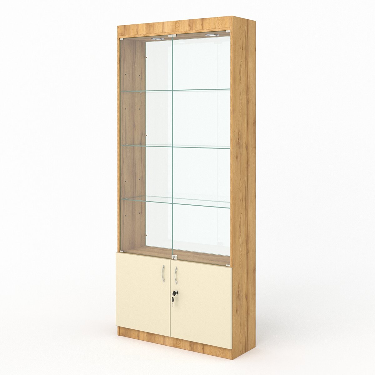 Витрина №300-2 (с дверками, задняя стенка - стекло), Дуб Золотистый и Крем Вайс 90 x 30 x 210 см информация: