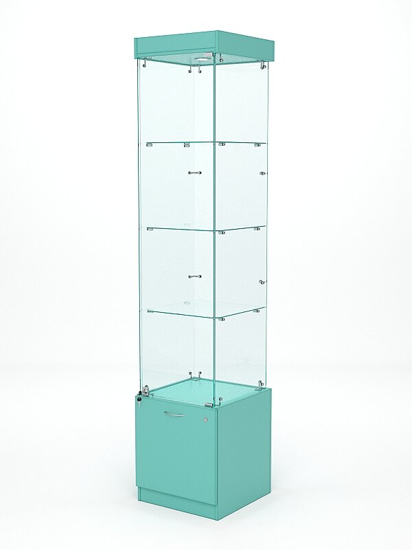 Витрина стеклянная "кристалл" №2 (с дверкой, задняя стенка - стекло), Тиффани Аква 45 x 45 x 210 см информация: