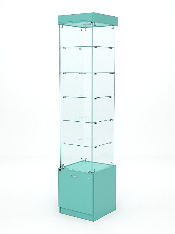 Витрина стеклянная "кристалл" №502 (с дверкой, задняя стенка - стекло), Тиффани Аква 45 x 45 x 210 см информация: