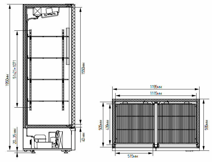 хол-витрина атлант хт-1001-000 /бел.,1,96х0,70х0,57, 445л, класс в, от+1 до +10град./