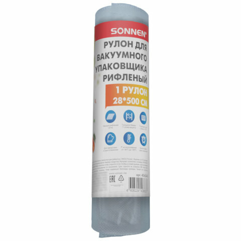 10 цен на Рулон для вакуумного упаковщика, рифленый, 28х500 см, 1 шт., SONNEN, максимальный вакуум, 456343