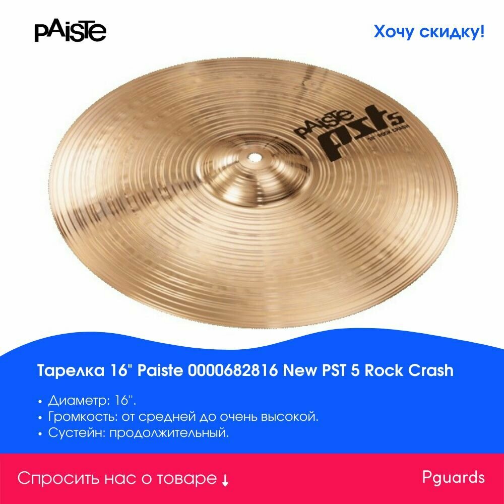 0 отзывов, средняя оценка 0. Чтобы купить «0000682816 New PST 5 Rock Crash Тарелка 16", Paiste» по лучшей цене мы сканируем авито, алиэкспресс, маркет, озон, савеловский, плеер, горбушку, беру, официальные сайты и находим минимальную. Администрация не несет ответсвенность актуальность цен на 0000682816 New PST 5 Rock Crash Тарелка 16", Paiste, более подробно узнавайте на сайте магазина.