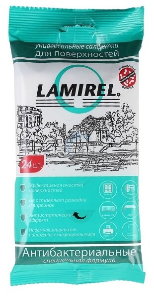 Антибактериальные универсальные чистящие салфетки Lamirel для поверхностей, 24 шт LA-61617 информация: