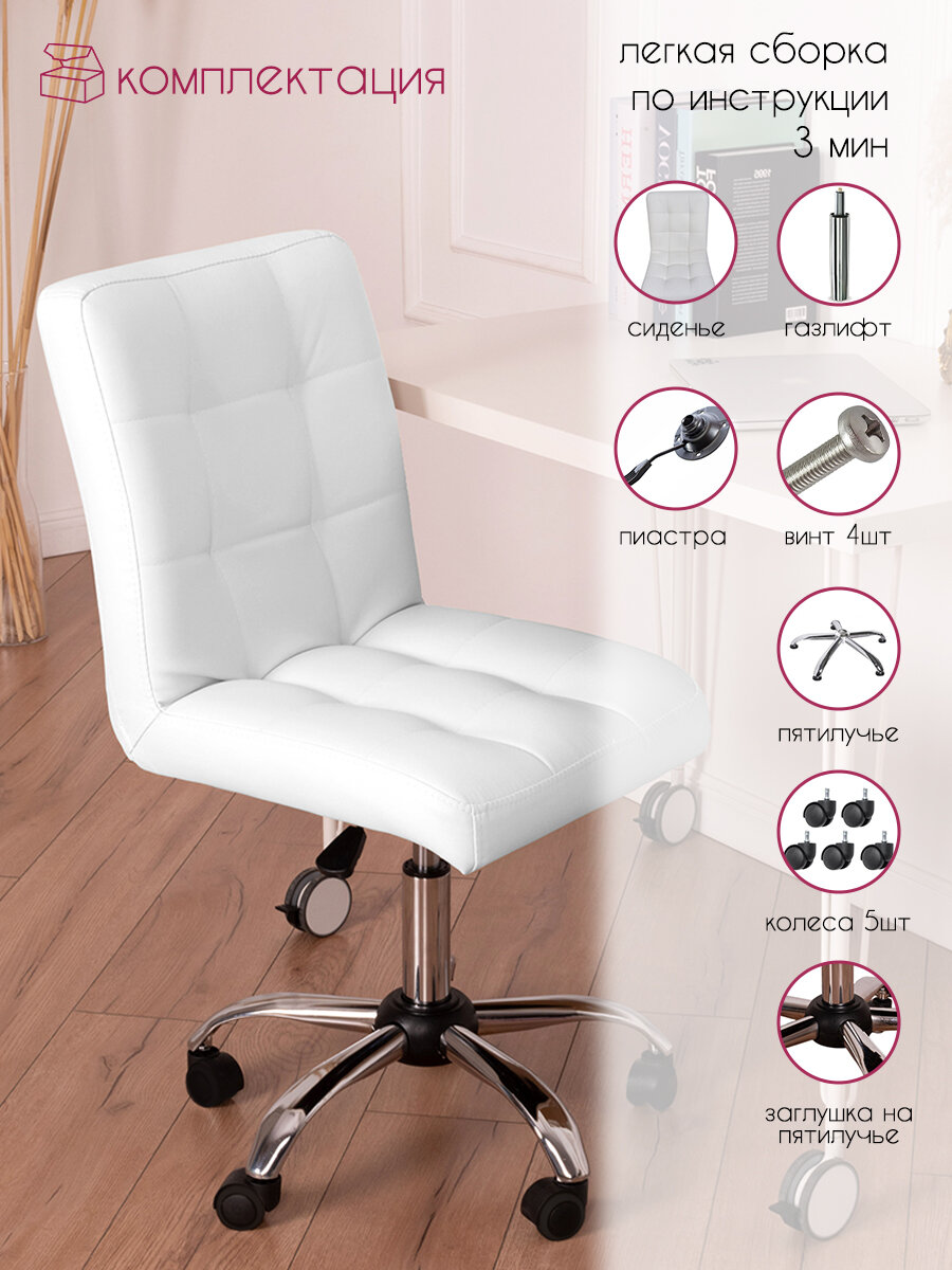 Стул мастера со спинкой и регулировкой высоты Cosmotec Ирис, на колесиках, белый информация: